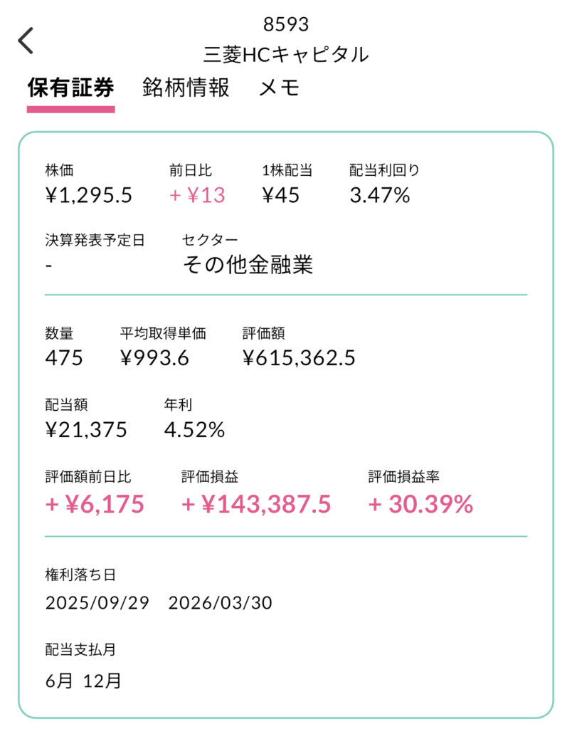 筆者も三菱HCキャピタルを475株保有していて、年間配当21,375円を得ることができています。